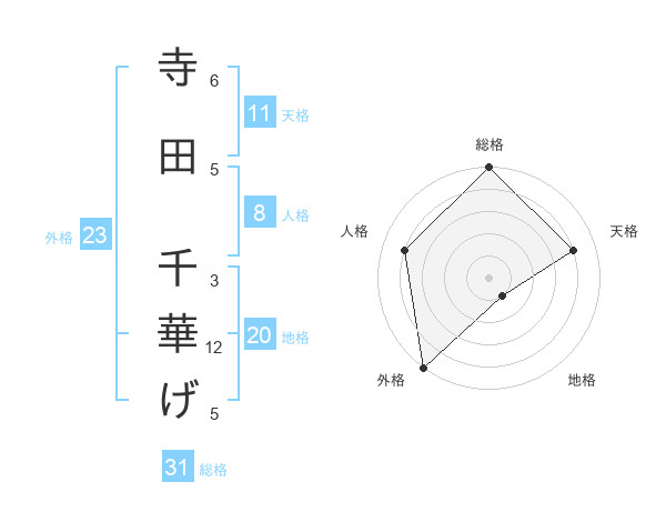 寺田 千華げさんを姓名の画数から五運を鑑定