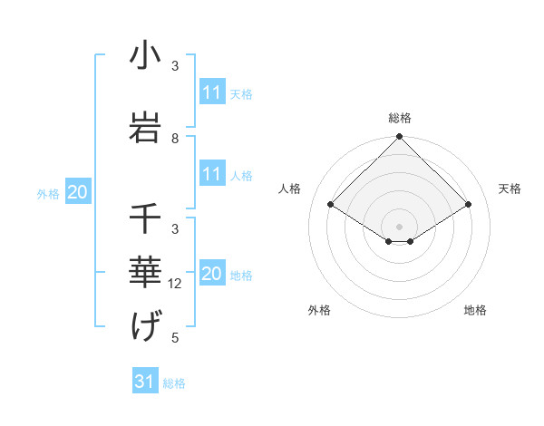小岩 千華げさんの総格は31画の5点!