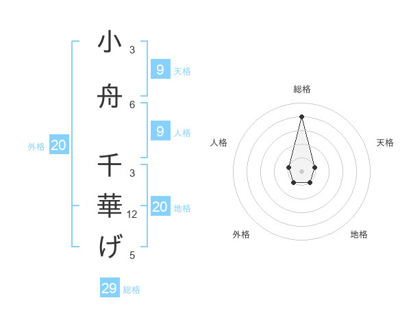 小舟 千華げさんの総格は29画の4点!