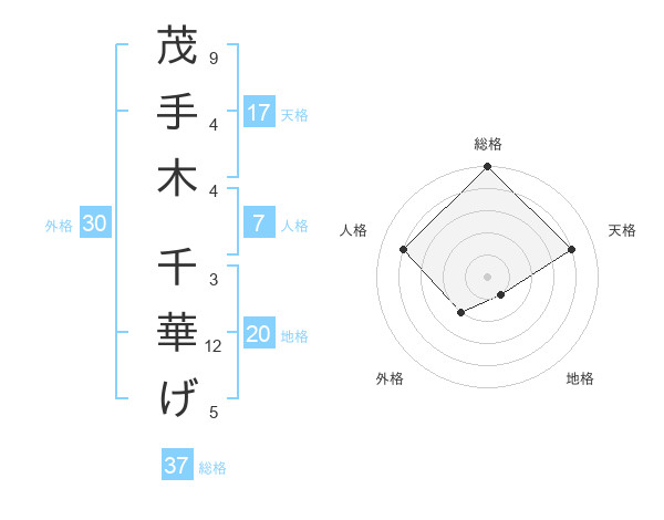 茂手木 千華げさんを姓名の画数から五運を鑑定
