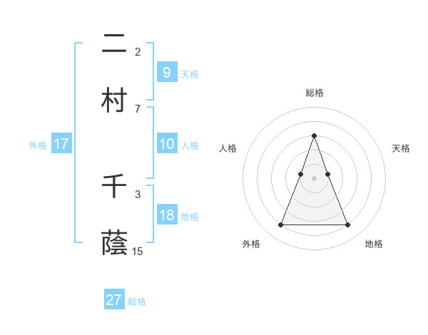 二村 千蔭さんの総格は27画の3点!
