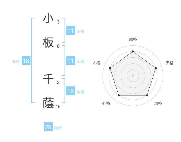 小板 千蔭さんの総格は29画の4点!