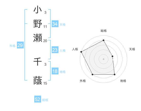 小野瀬 千蔭さんを姓名の画数から五運を鑑定