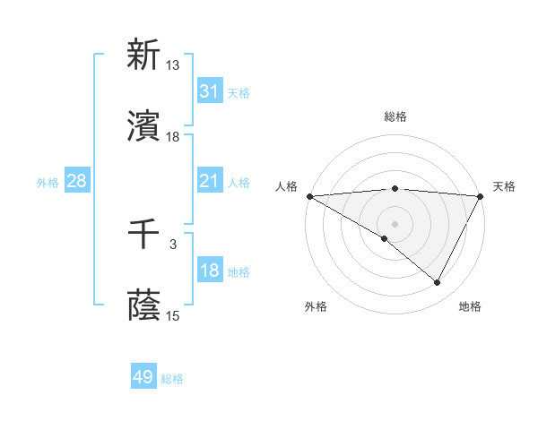 新濱 千蔭さんの天格は31画の5点!