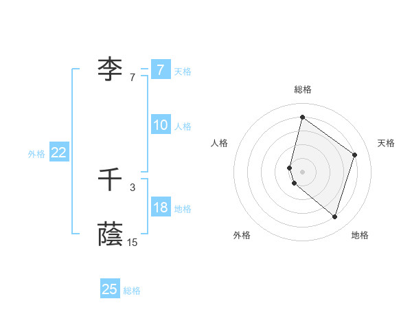 李 千蔭さんの総格は25画の4点!