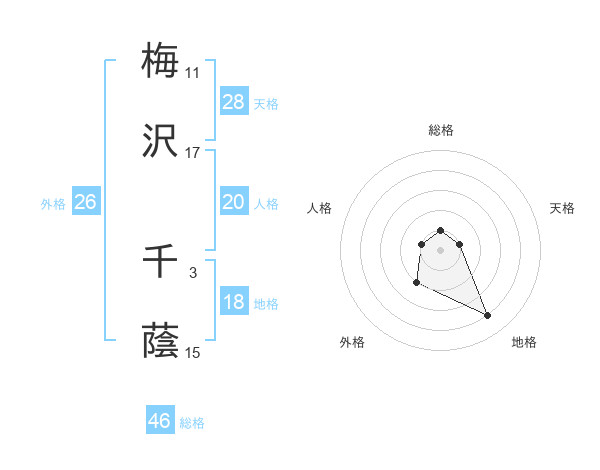 梅沢 千蔭さんを姓名の画数から五運を鑑定
