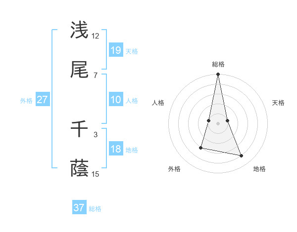 浅尾 千蔭さんの総格は37画の5点!