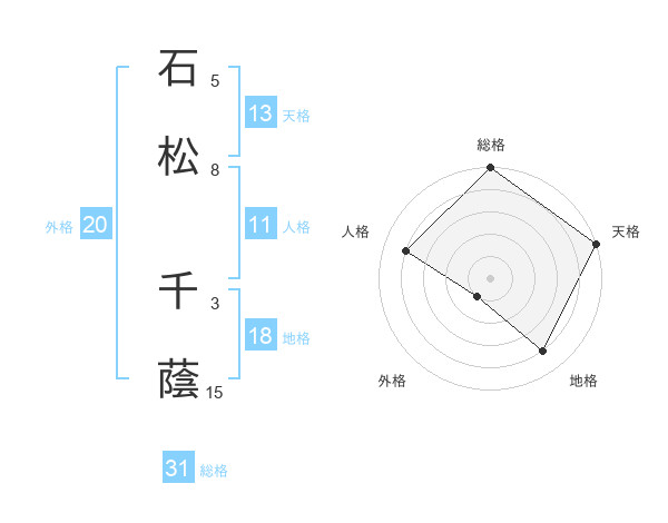 石松 千蔭さんを姓名の画数から五運を鑑定