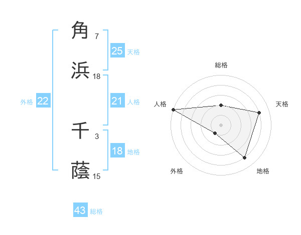 角浜 千蔭さんの総格は43画の2点!