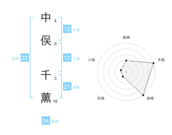 中俣 千薫さんの天格は13画の5点!