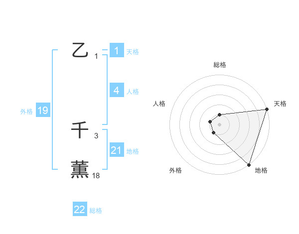乙 千薫さんの総格は22画の1点!
