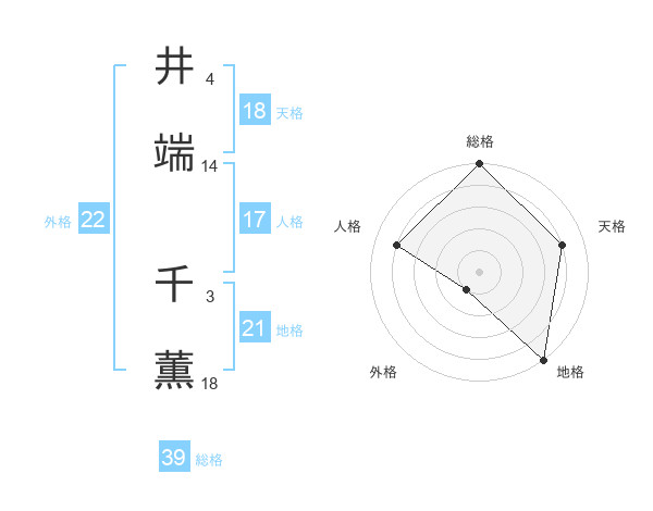 井端 千薫さんの天格は18画の4点!