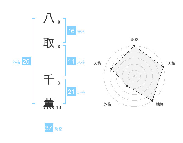 八取 千薫さんの総格は37画の5点!
