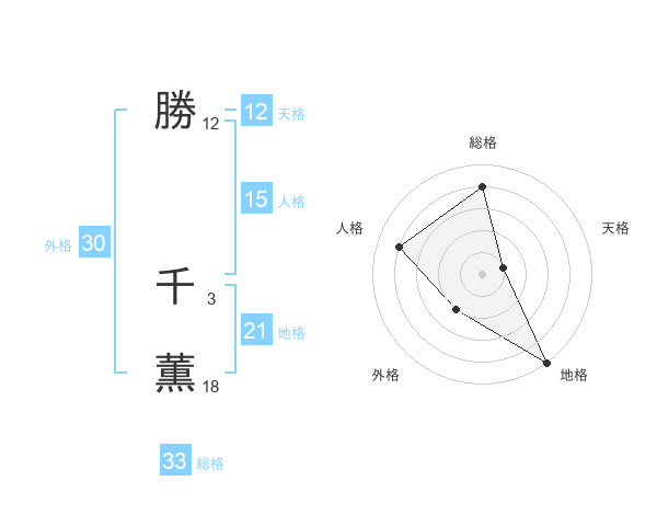 勝 千薫さんの外格は30画の2点!