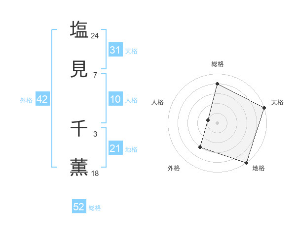 塩見 千薫さんを姓名の画数から五運を鑑定