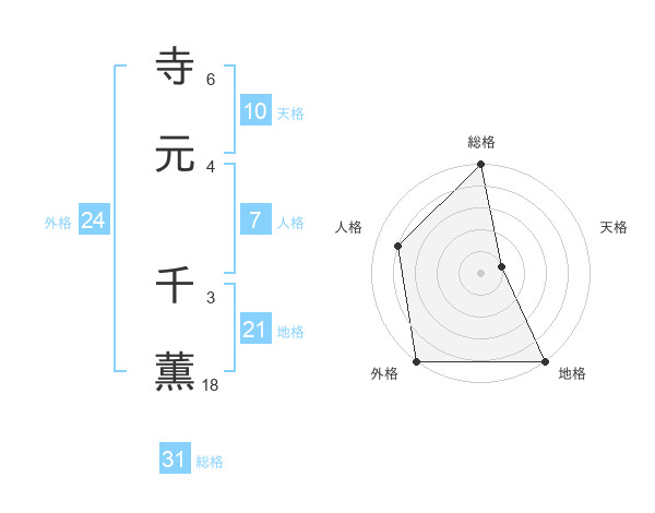 寺元 千薫さんを姓名の画数から五運を鑑定