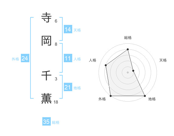 寺岡 千薫さんの天格は14画の1点!