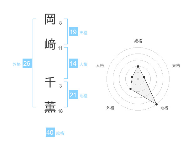 岡﨑 千薫さんを姓名の画数から五運を鑑定