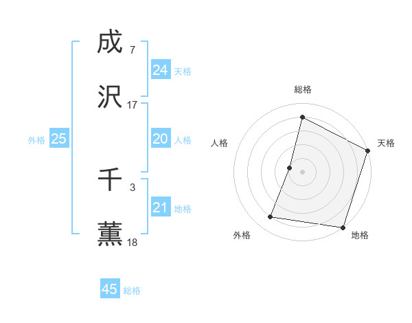 成沢 千薫さんを姓名の画数から五運を鑑定