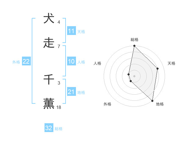 犬走 千薫さんを姓名の画数から五運を鑑定