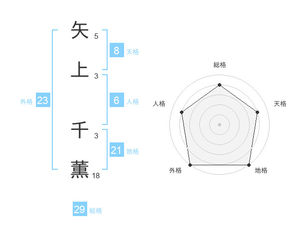 矢上 千薫さんを姓名の画数から五運を鑑定