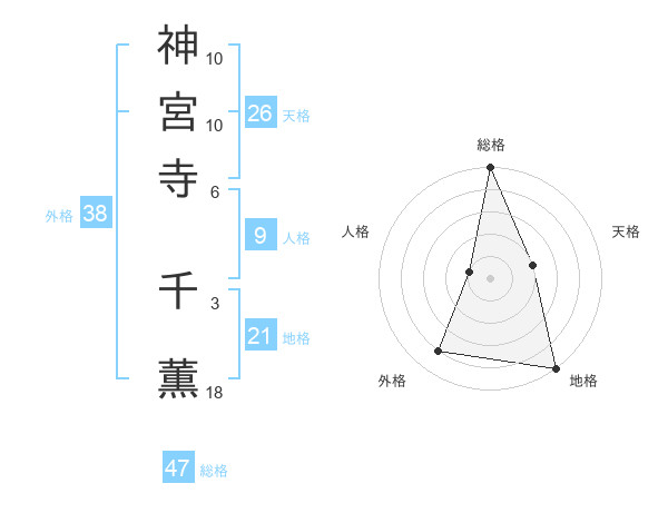 神宮寺 千薫さんの総格は47画の5点!