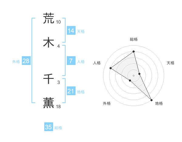 荒木 千薫さんの総格は35画の4点!