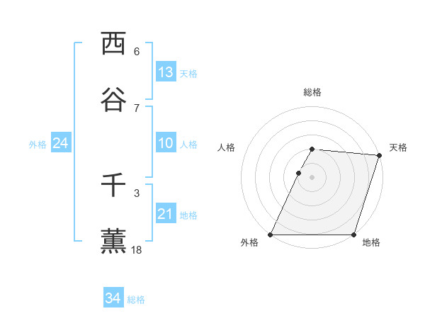 西谷 千薫さんを姓名の画数から五運を鑑定