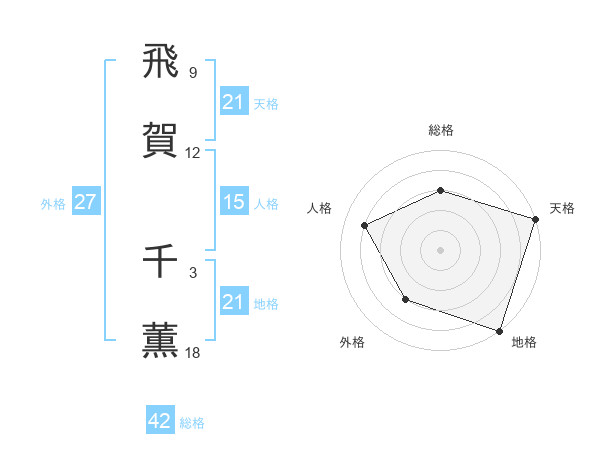 飛賀 千薫さんを姓名の画数から五運を鑑定
