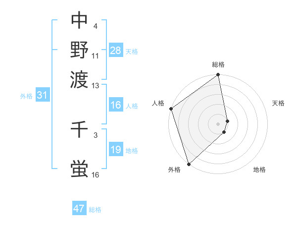 中野渡 千蛍さんの外格は31画の5点!