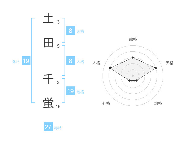 土田 千蛍さんを姓名の画数から五運を鑑定