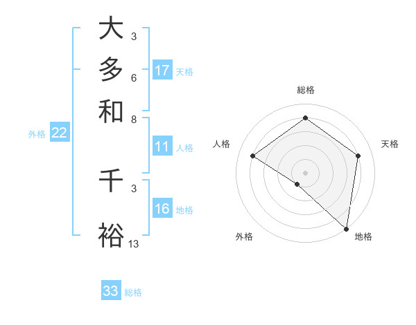 大多和 千裕さんの天格は17画の4点!