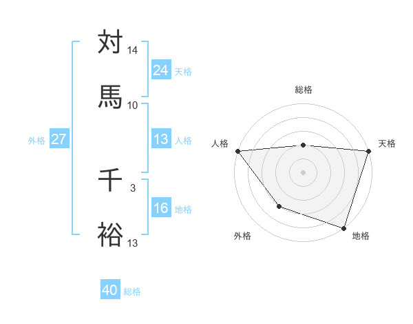 対馬 千裕さんを姓名の画数から五運を鑑定