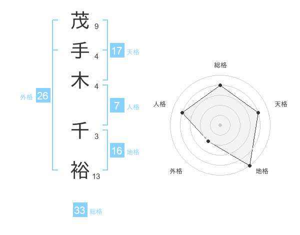 茂手木 千裕さんの天格は17画の4点!