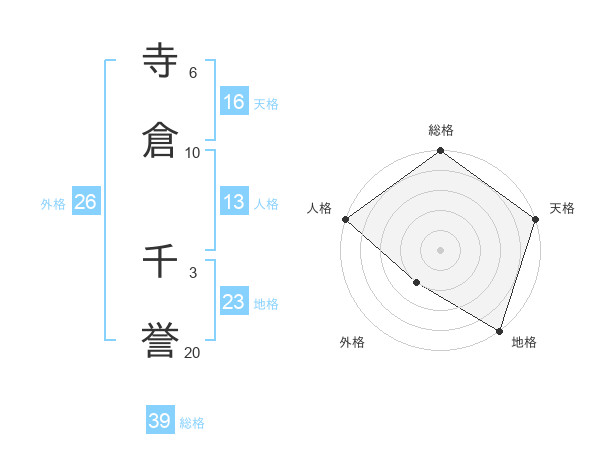 寺倉 千誉さんを姓名の画数から五運を鑑定