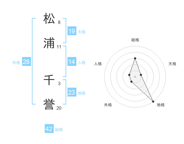 松浦 千誉さんを姓名の画数から五運を鑑定