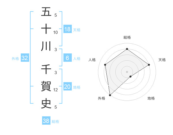 五十川 千賀史さんの総格は38画の4点!