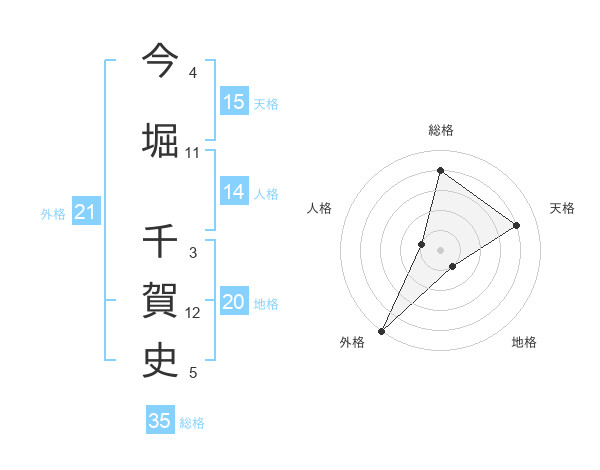 今堀 千賀史さんを姓名の画数から五運を鑑定