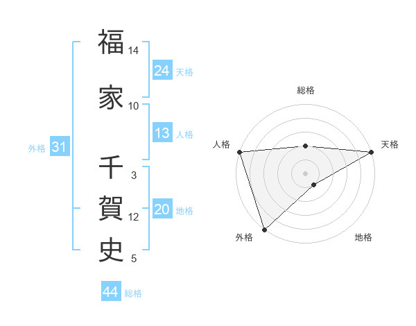 福家 千賀史さんを姓名の画数から五運を鑑定