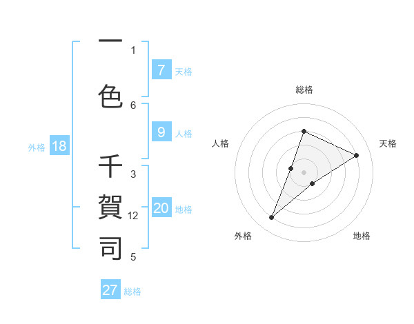 一色 千賀司さんを姓名の画数から五運を鑑定