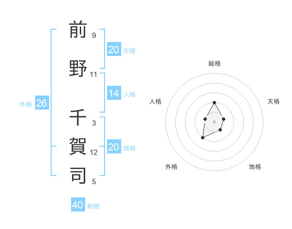 前野 千賀司さんを姓名の画数から五運を鑑定
