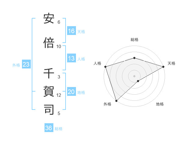 安倍 千賀司さんの天格は16画の5点!
