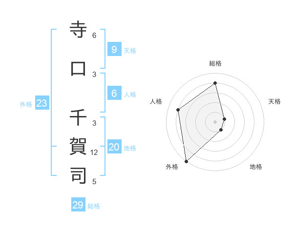 寺口 千賀司さんの総格は29画の4点!