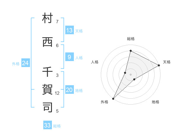 村西 千賀司さんを姓名の画数から五運を鑑定