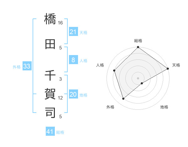 橋田 千賀司さんの天格は21画の5点!