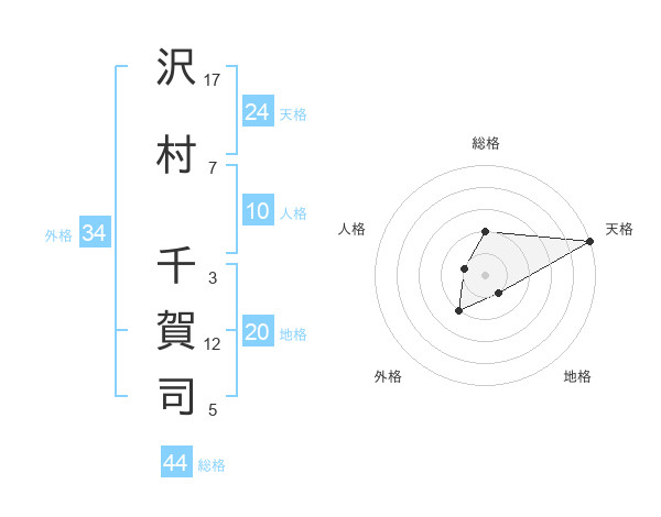 沢村 千賀司さんを姓名の画数から五運を鑑定