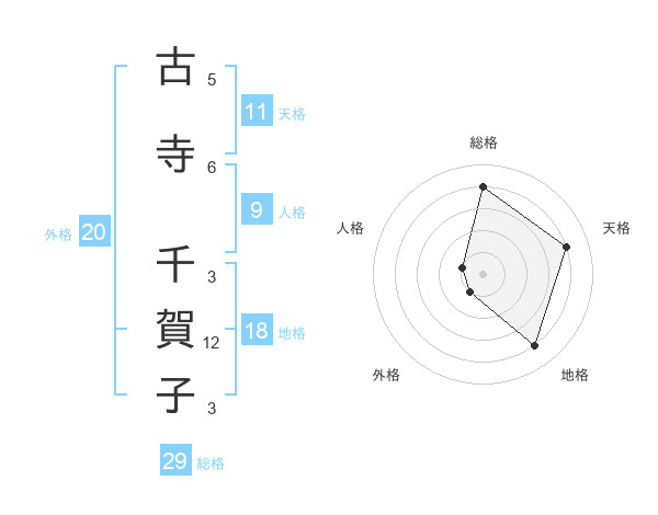古寺 千賀子さんの総格は29画の4点!
