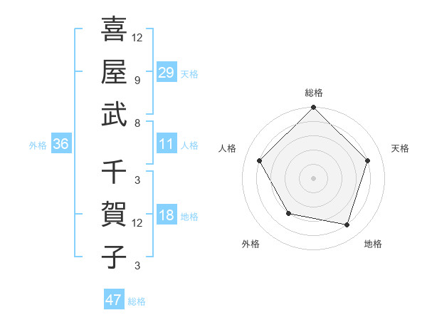 喜屋武 千賀子さんの外格は36画の3点!