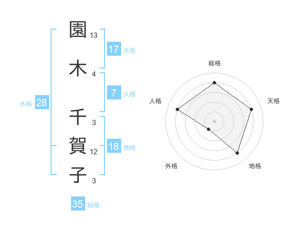 園木 千賀子さんの天格は17画の4点!