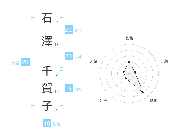 石澤 千賀子さんを姓名の画数から五運を鑑定